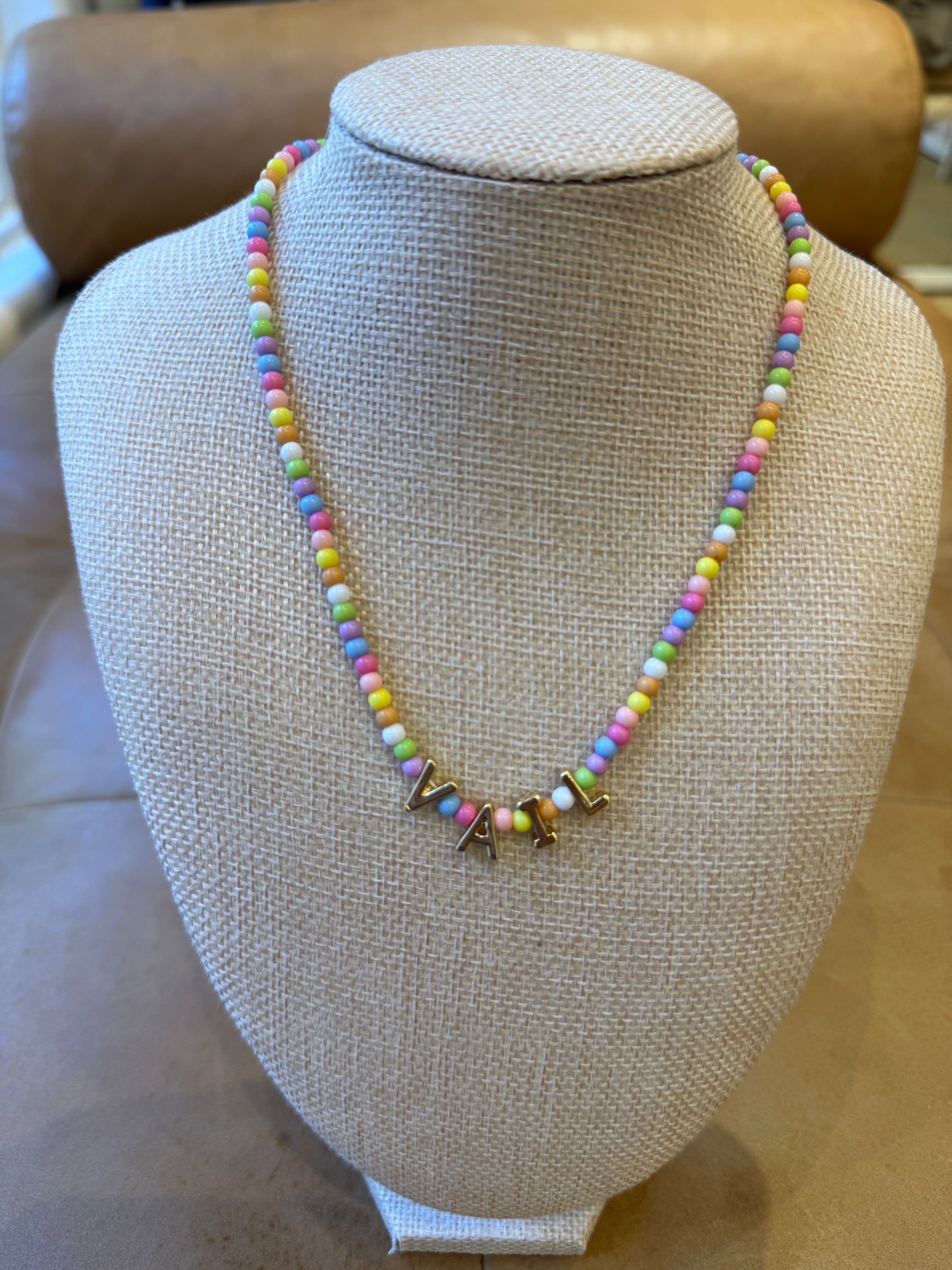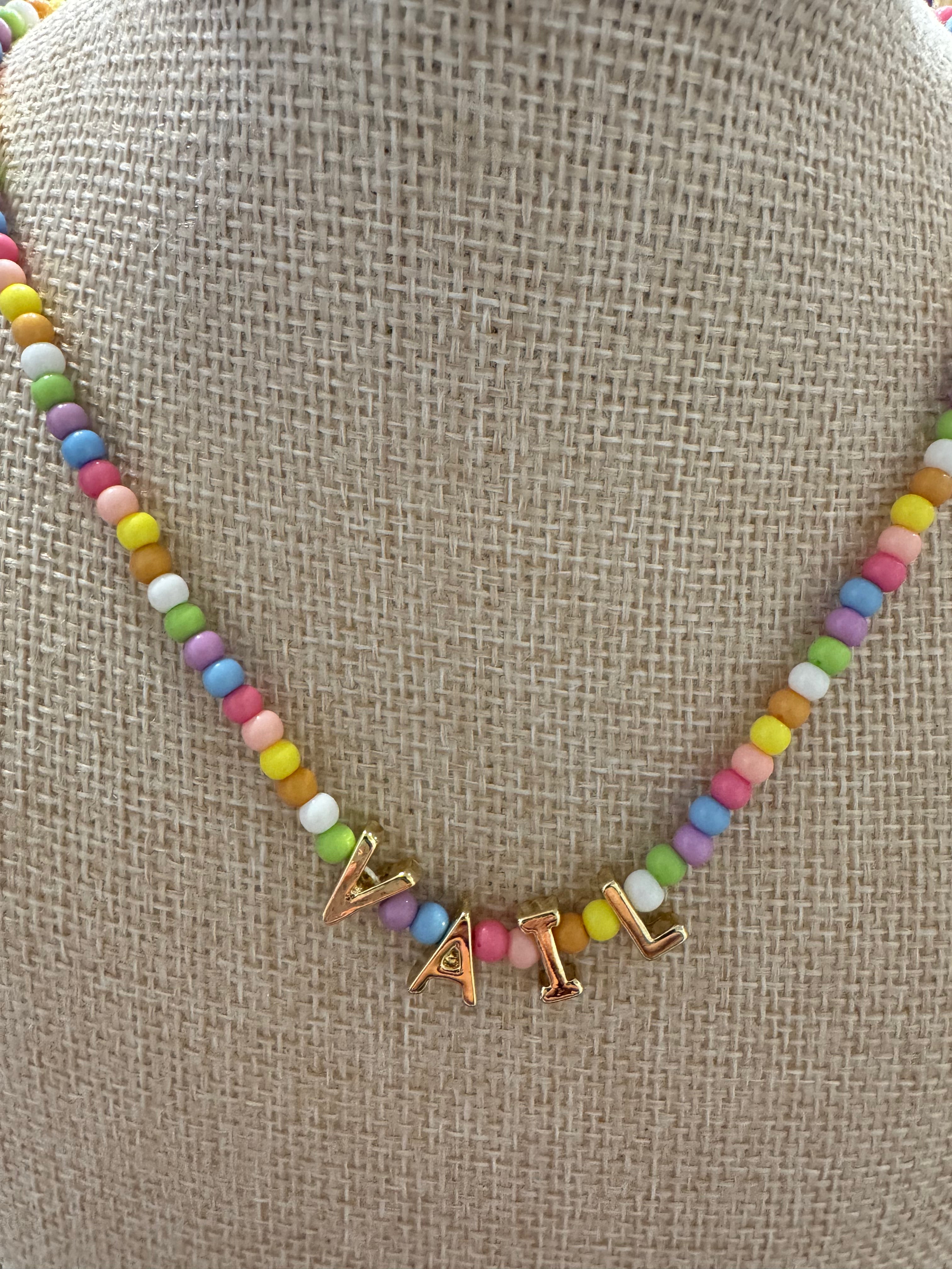 A fun and colorful necklace made with vibrant beads and gold accents, inspired by the charm of Vail. Whether you're visiting or a local who loves your mountain town, it's the perfect keepsake. Finished with a secure lobster clasp for easy, everyday wear.