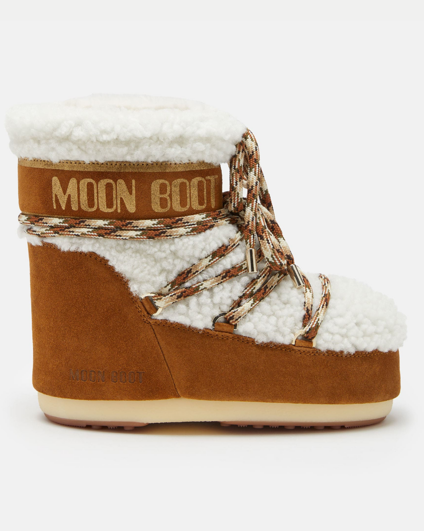 Step into the season’s most coveted silhouette. The Moon Boot Icon Low Shearling in Whiskey & Off White isn’t just a boot—it’s a declaration that you refuse to compromise style for warmth. Reimagining the legendary astronaut-inspired design, this edition swaps technical nylon for ultra-plush, tactile shearling that wraps your feet in cloud-like luxury.