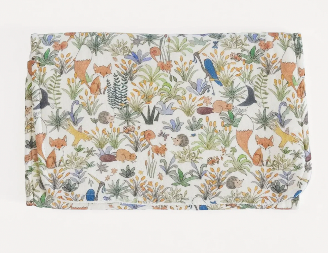 Beauty meets purpose. The Foxy Forest Burp Cloth, constructed with a buttery soft cotton terry layer on the back and a beautiful printed muslin front, is absorbent yet elegant.