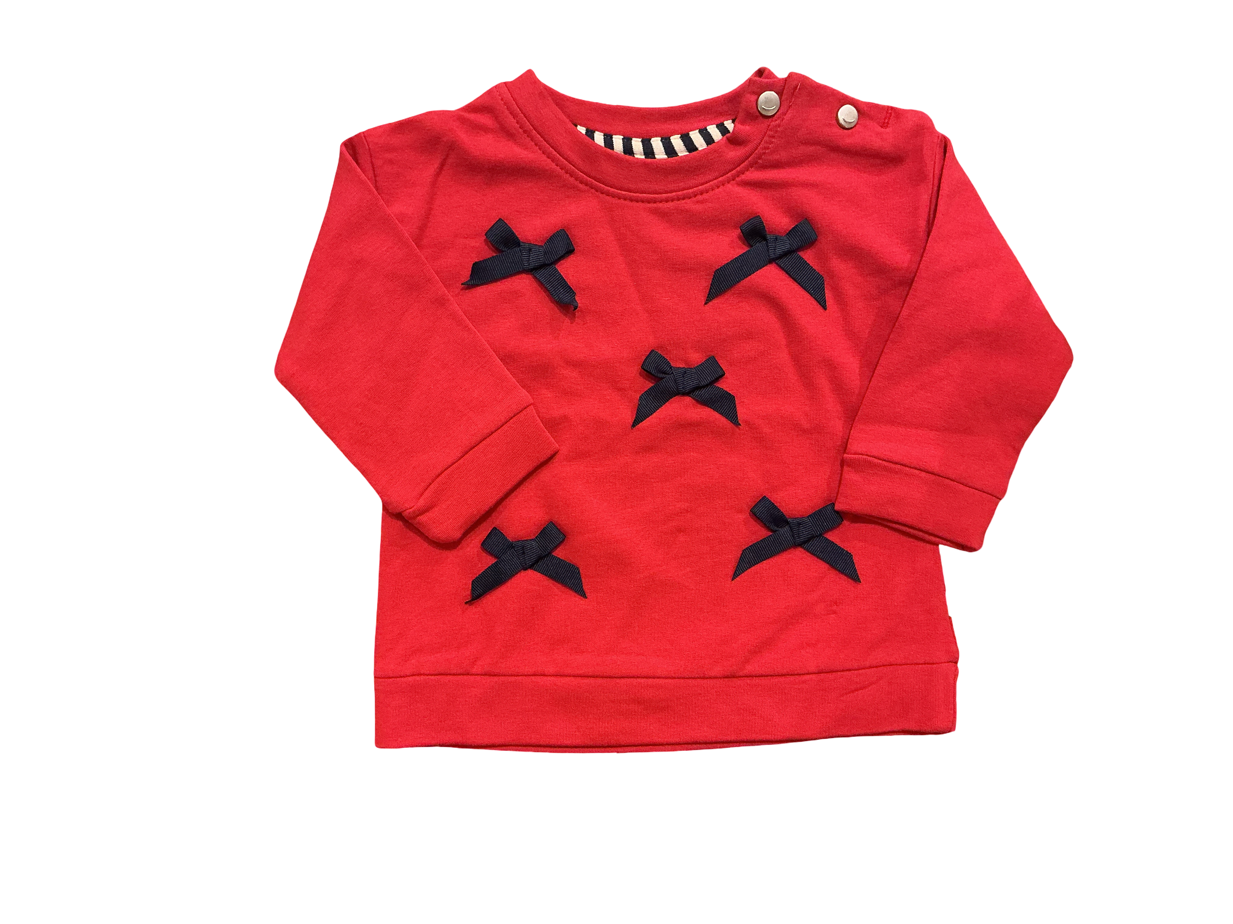Soft, cozy, and irresistibly cute — this red sweatshirt features charming navy bow details and easy shoulder snaps for quick dressing. A perfect everyday piece with a sweet touch of style.