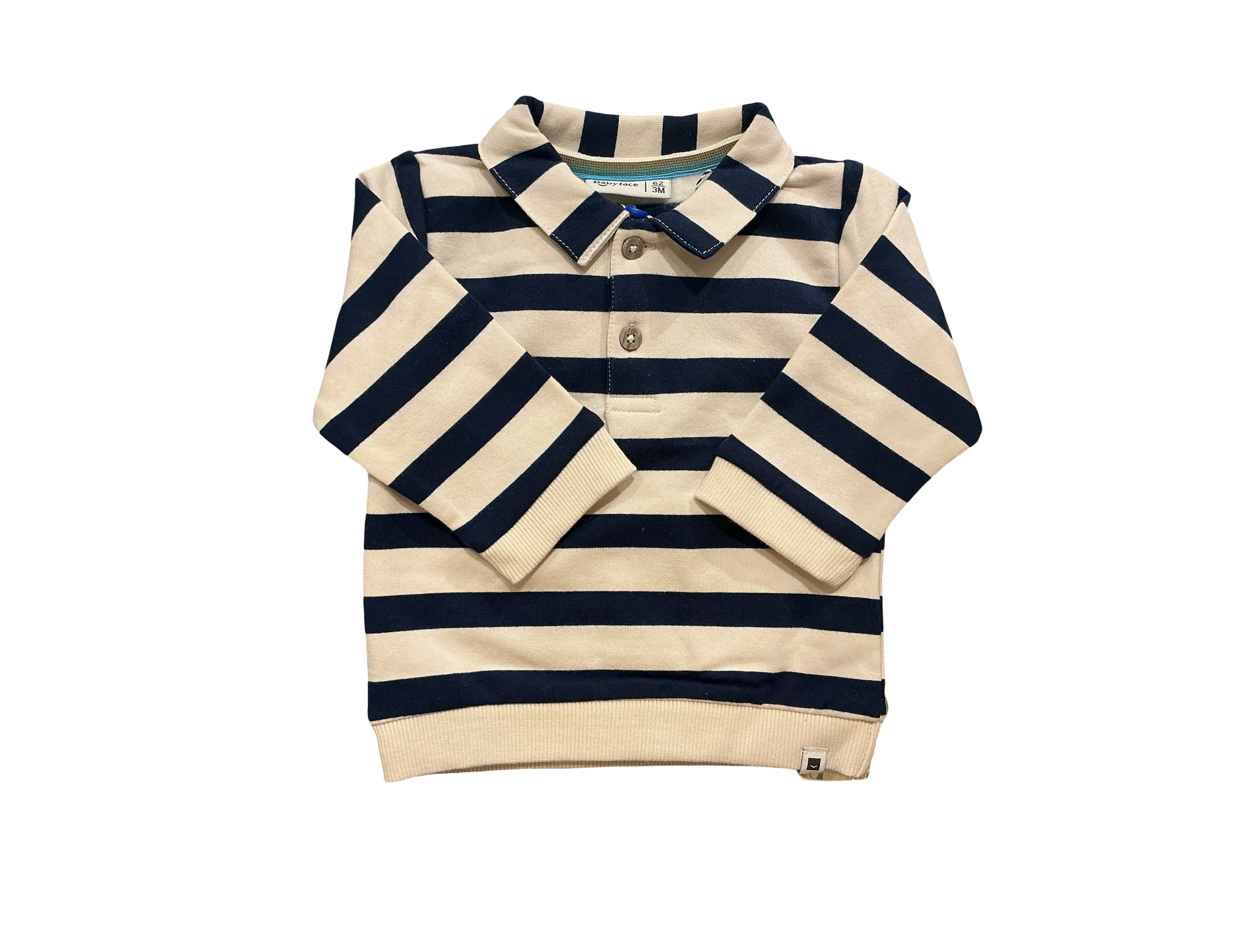 Classic and cozy, this collared sweatshirt features bold navy stripes and soft cotton fabric for all-day comfort. A stylish everyday piece designed for baby sizes — perfect for layering or gifting.