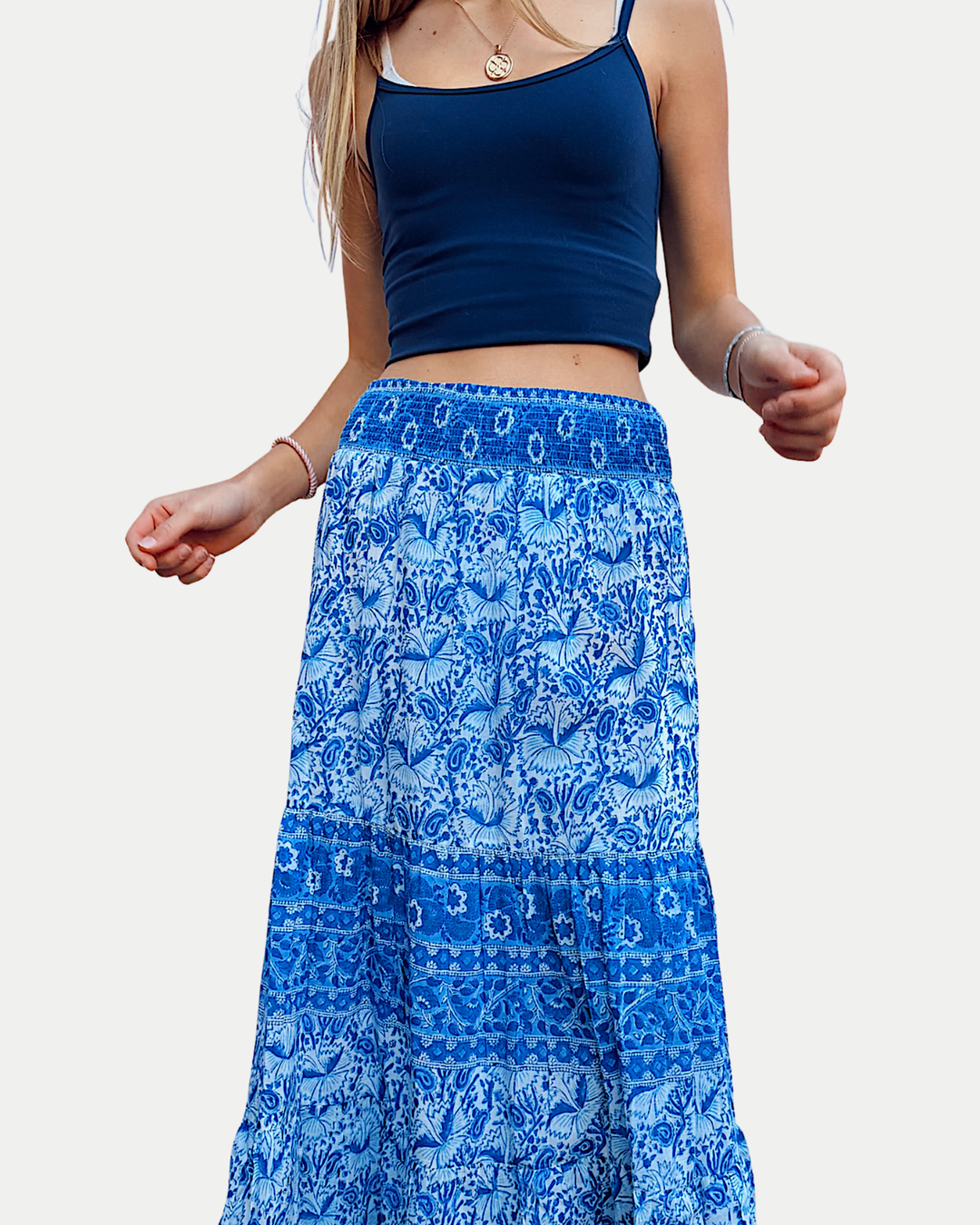 Discover Bell resort wear: hand-block printed dresses, skirts, and tops in cotton-silk voile. Shop mini to maxi styles for women and kids. Explore the collection.
