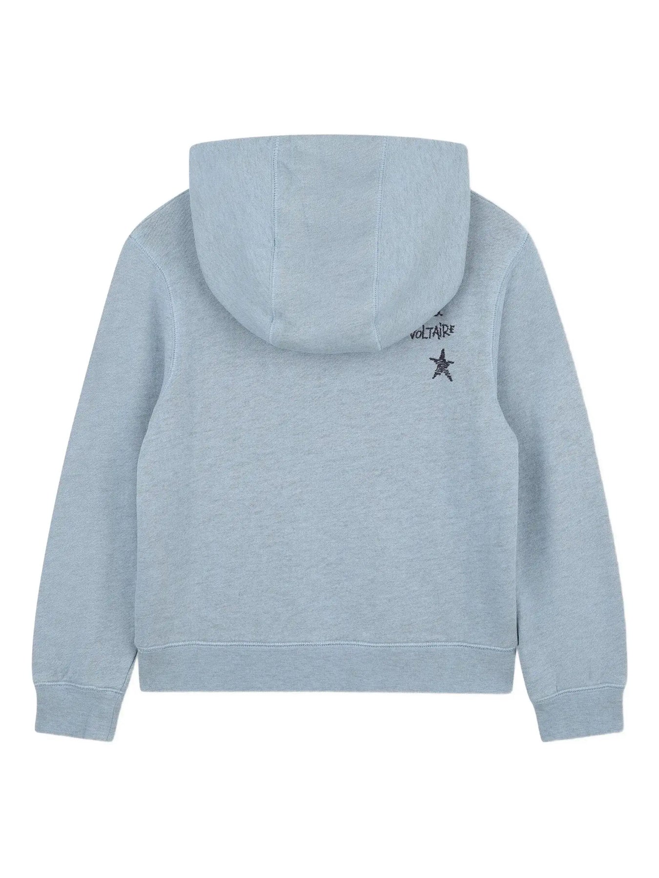 Bring a cool, effortless vibe to their everyday look with this light blue hoodie by Zadig & Voltaire. Crafted from a soft cotton blend, it features delicate embroidered details — a signature wing motif on the chest and the playful “Let’s Go Wild” inscription. The classic hood and kangaroo pocket add extra comfort and laid-back style, perfect for days full of adventure.