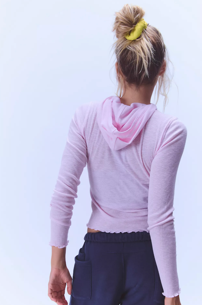 Features: Ultra-light fabrication; pullover hood; funnel neckline; long sleeves; scalloped trim; buti logo at hip.