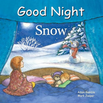 Good Night Snow highlights building a snowman, sledding, making snow angels, blizzards, snowball fights, snow shoeing, skiing, snow plows, winter gear, shoveling, catching snowflakes, making snow treats, snow leopards, and more. Put on your winter boots and button up that warm jacket—