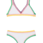 Make the most of your little one’s holiday in the Rainbow Embroidered Bikini in Ultraviolet. Inspired by Brazilian designer Solange Ferrarini’s vivid artistry, this swimsuit incorporates her signature exposed elastic detail. This pop of color gives your kiddo the confidence to shine.