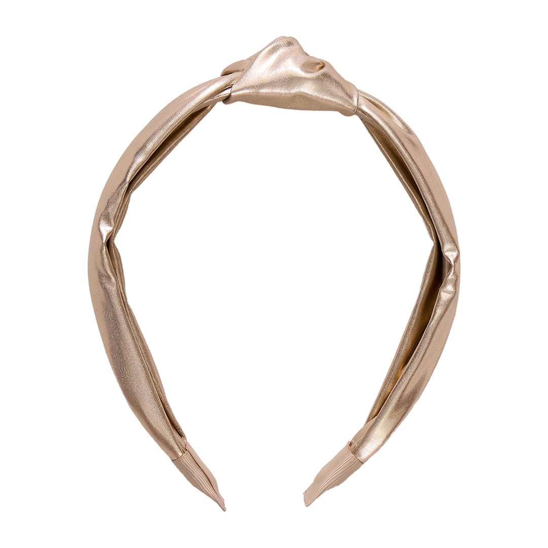 Top Knot! Our fresh and fashionable knotted lame headband makes a very stylish impression. It's the perfect accent to all of our winter looks.