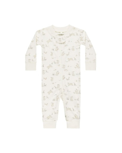 Wrap your little one in the ultimate comfort of our Zip Long Sleeve Sleeper, crafted from luxuriously soft organic brushed cotton to ensure endless coziness. The elegant 'bunnies' print on a serene 'ivory' backdrop brings a touch of sweet serenity to your baby's sleepwear. Designed with thoughtful details, this sleeper features double zippers for hassle-free changes, making both nighttime and daytime routines a breeze.