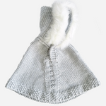 This beautiful knit baby poncho will keep the little one warm. A great throw-over for any outfit. A Faux Fur trim beautifully compliments the knit Baby Pink color.