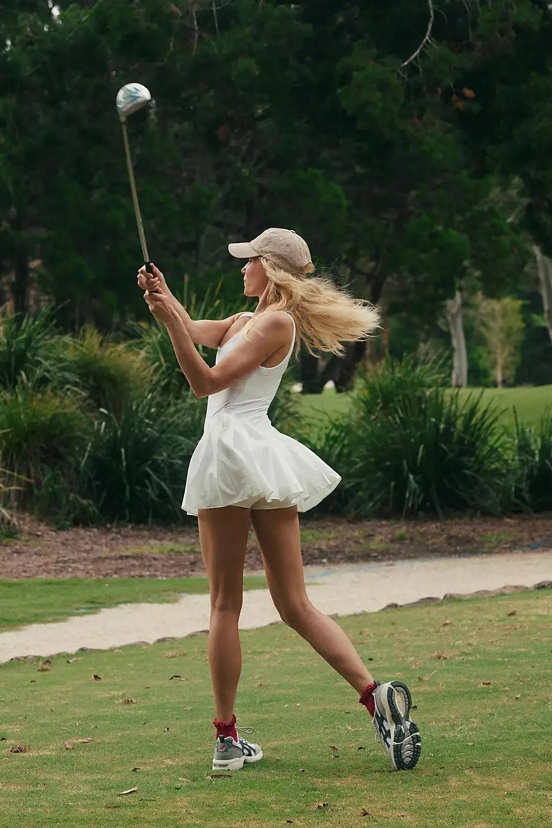 Designed for all your favorite court sports, this flattering dress is featured in a soft fabrication and classic pull-on style with a pleated bottom skirt and built-in performance shorts.