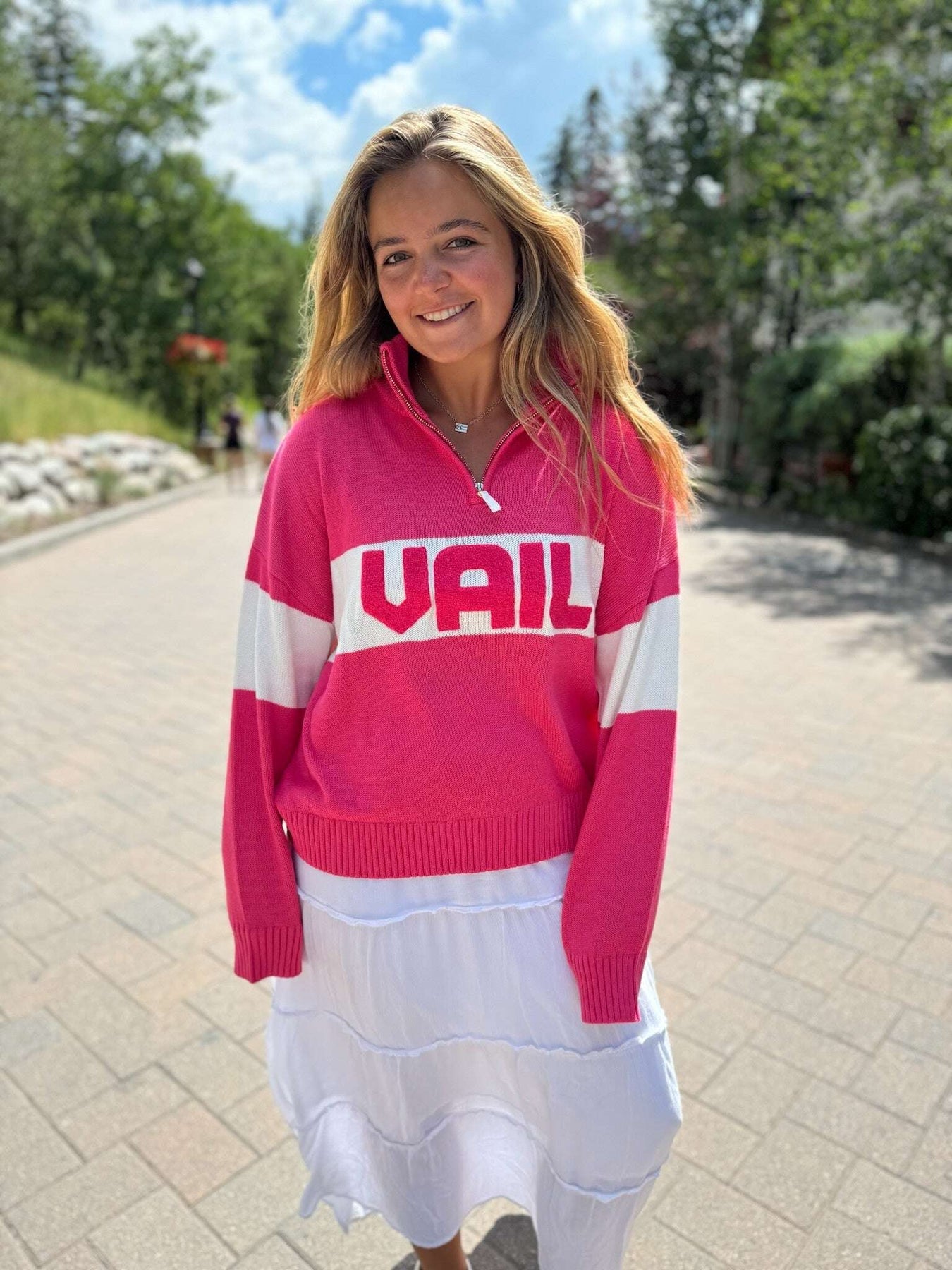 Ellsworth & Ivey Vail Block Quarter Zip - Pink/Ivory