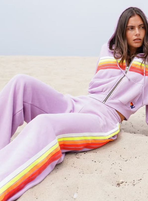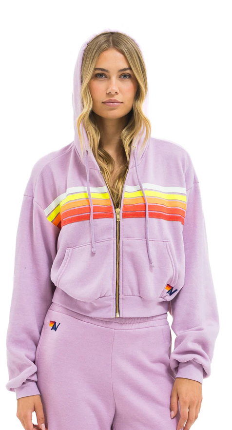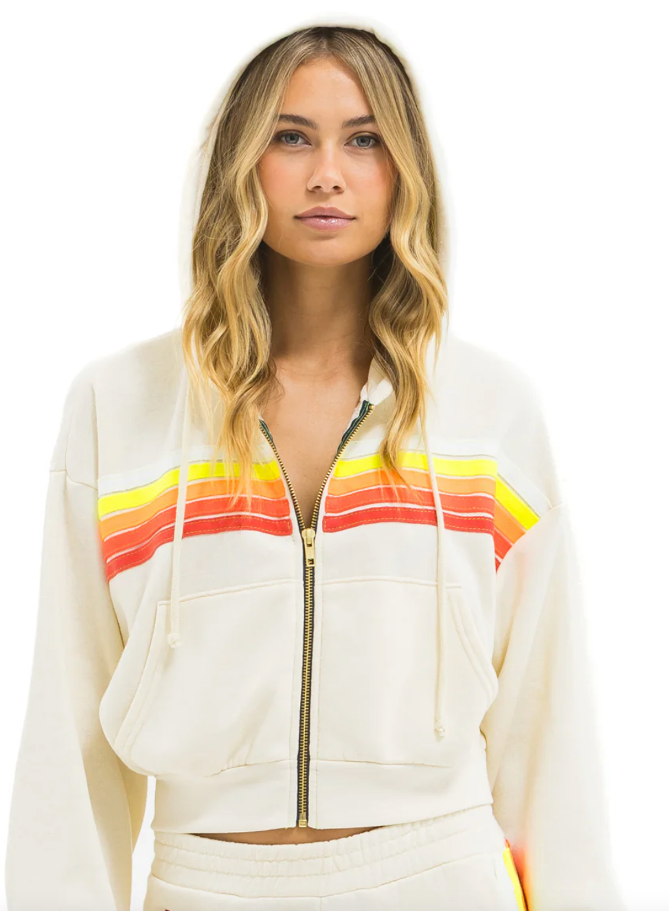 Aviator Nation 5 Stripe Cropped Zip Hoodie
