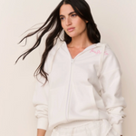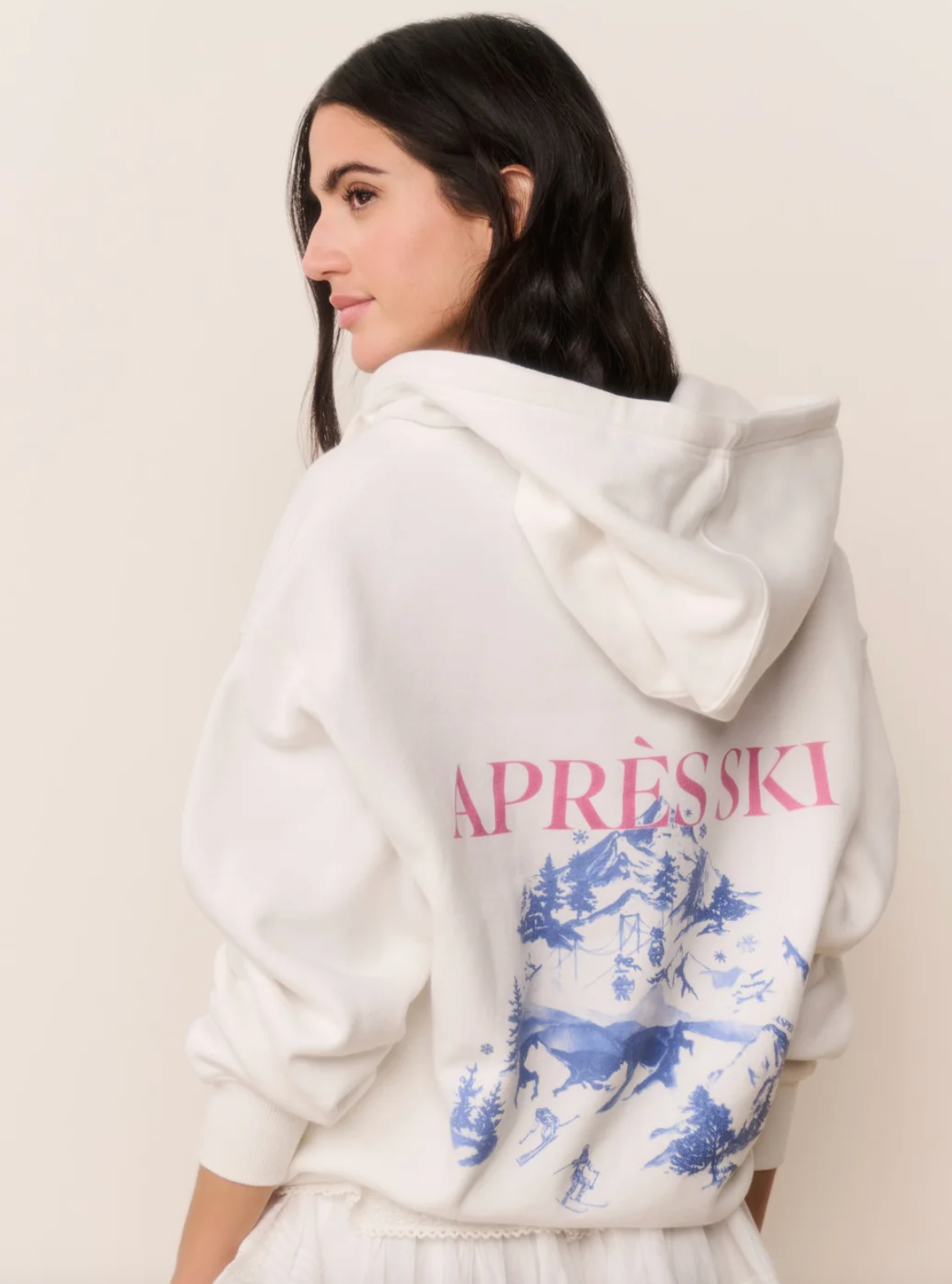 The Ballie Jacket is a cozy zip-up hoodie crafted from a soft cotton blend, perfect for relaxed winter styling. Featuring a two-tone mountainscape graphic on the back, LoveShackFancy logo on the chest, and kangaroo pockets, it combines comfort with signature playful detailing. Ribbed trims at the sleeves and hem and a self-doubled hood complete this easy-fit, casual piece.