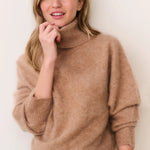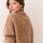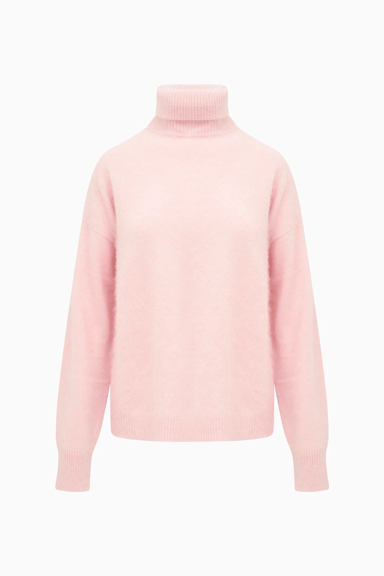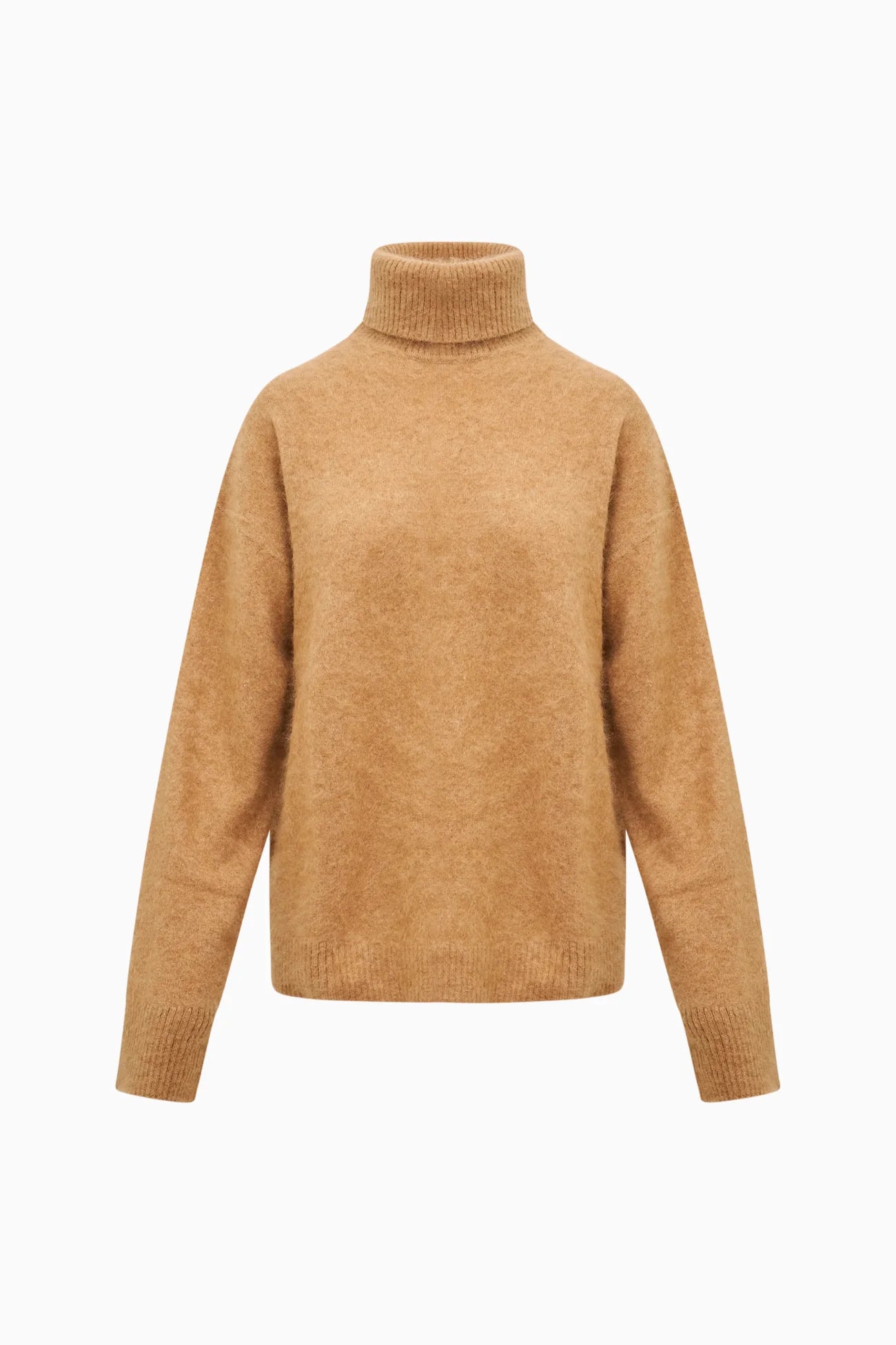 The Nia Turtleneck is the ultimate cozy-chic essential. Designed from a warm brushed cashmere, it’s luxuriously soft with a lightly fluffy texture. With a longer, oversized fit, the classic ribbed turtleneck, cuffs, and hem add structure while maintaining a relaxed, effortless silhouette.