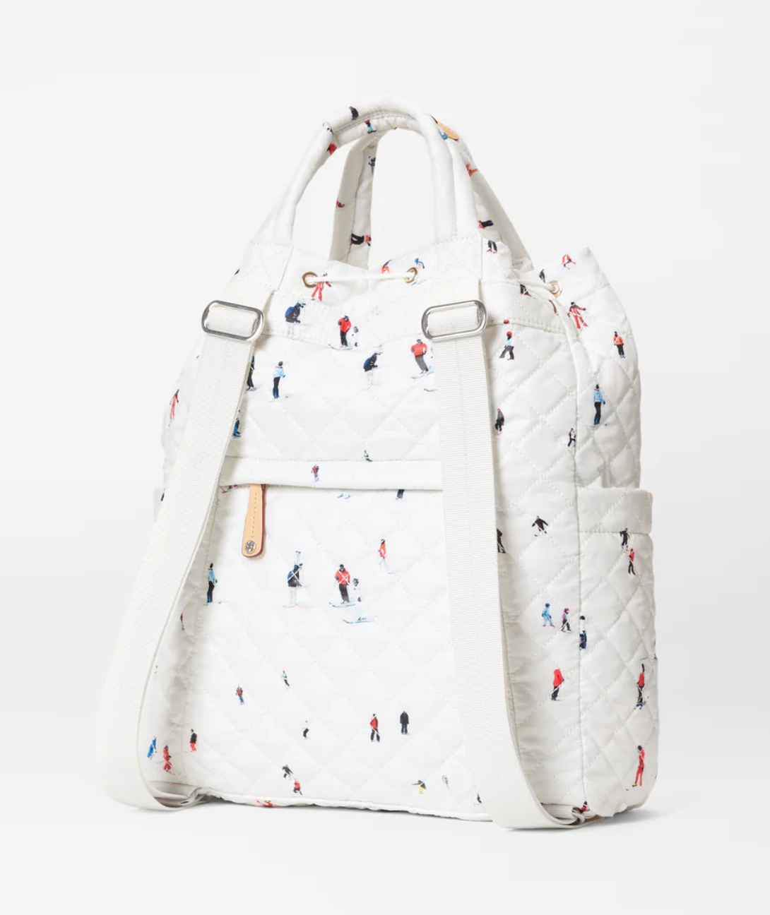 The MZ Wallace Metro Convertible Backpack – Dede Skier Print combines everyday versatility with the charm of a whimsical, winter-inspired design. Crafted from the brand’s signature lightweight, quilted nylon, this multitasking bag seamlessly transforms from a backpack to a crossbody or handheld tote thanks to its adjustable, removable straps.