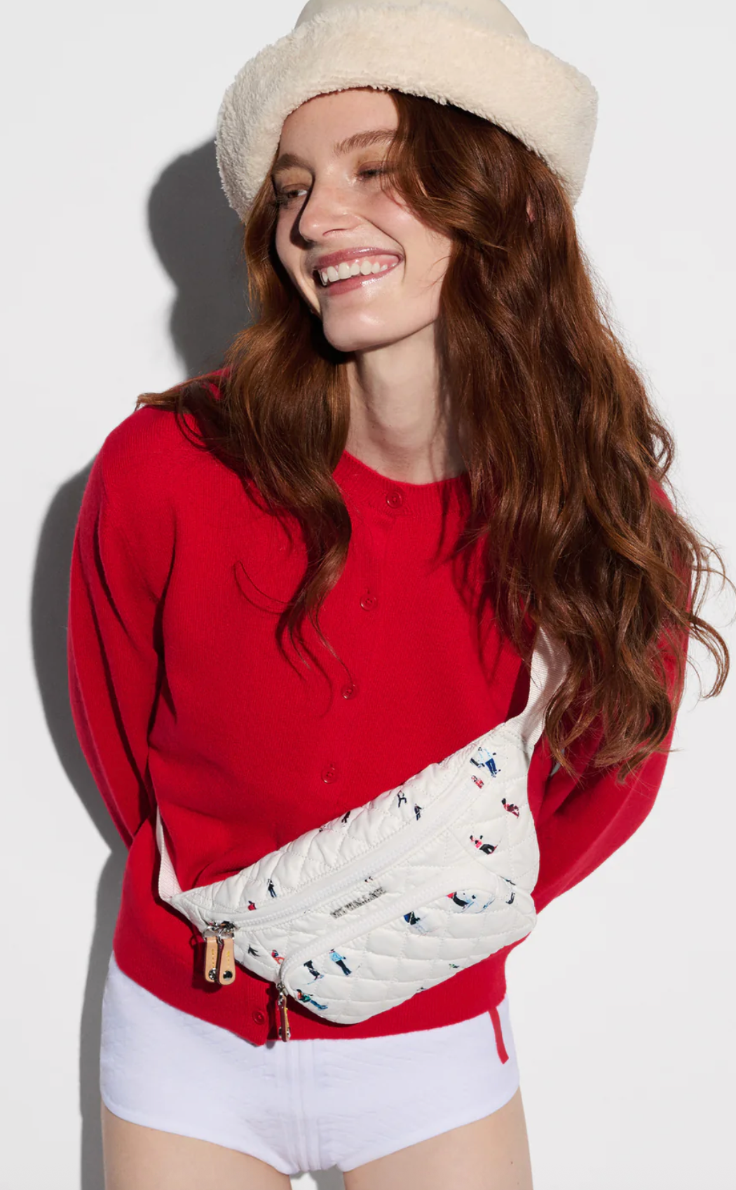 The MZ Wallace Small Metro Crossbody Sling in the playful Dede Skier Print delivers lightweight comfort, hands-free functionality, and standout style. Designed with the brand’s signature quilted nylon, this compact sling keeps your essentials close with a streamlined silhouette and easy, on-the-go wear. The adjustable strap allows for a personalized fit, while the zip-top closure ensures everything stays secure.