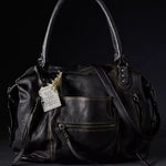 Features: Vintage-inspired leather fabrication, two carrying straps, adjustable and detachable shoulder strap, main zip entry, exterior zip pockets, interior zip pocket, leather pull tabs, logo embossed tag