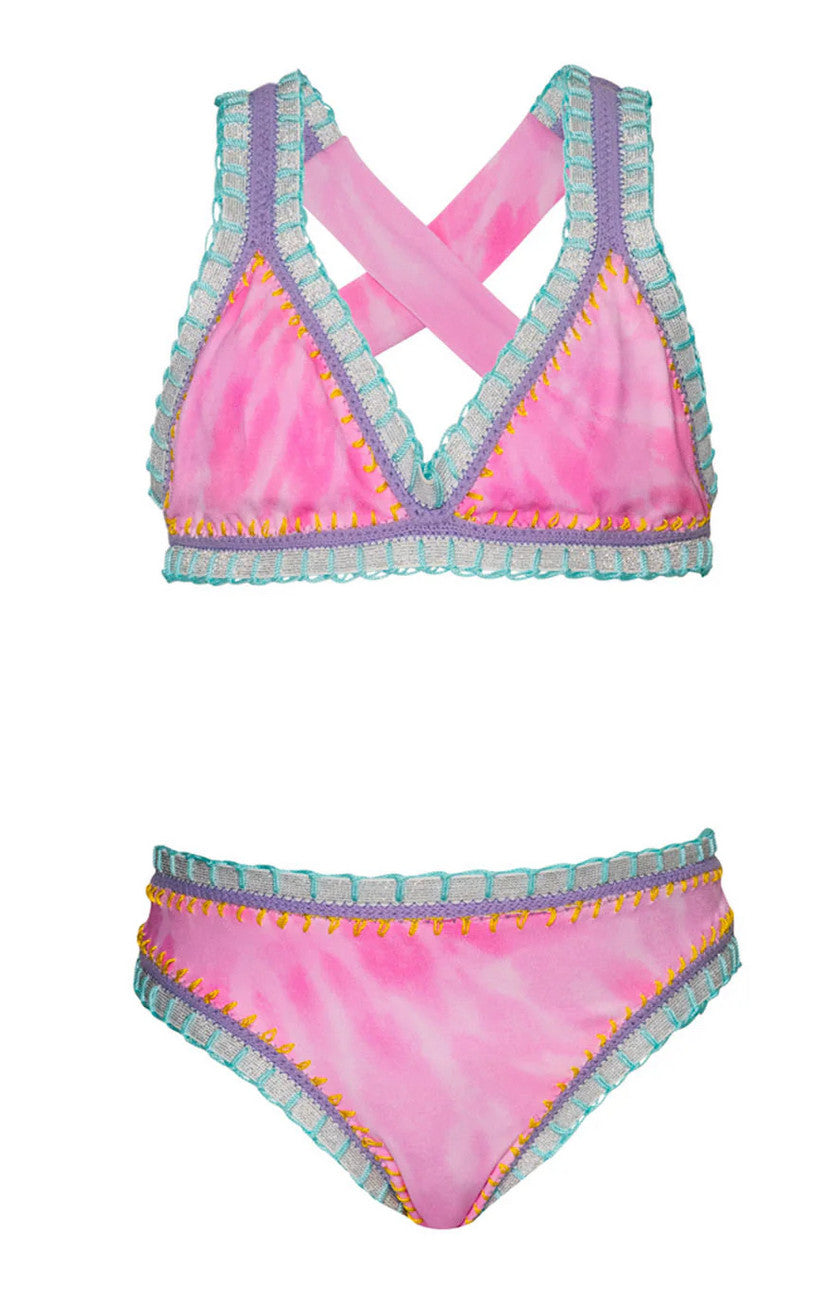Make the most of your little one’s holiday in the Rainbow Embroidered Bikini in Ultraviolet. Inspired by Brazilian designer Solange Ferrarini’s vivid artistry, this swimsuit incorporates her signature exposed elastic detail. This pop of color gives your kiddo the confidence to shine.
