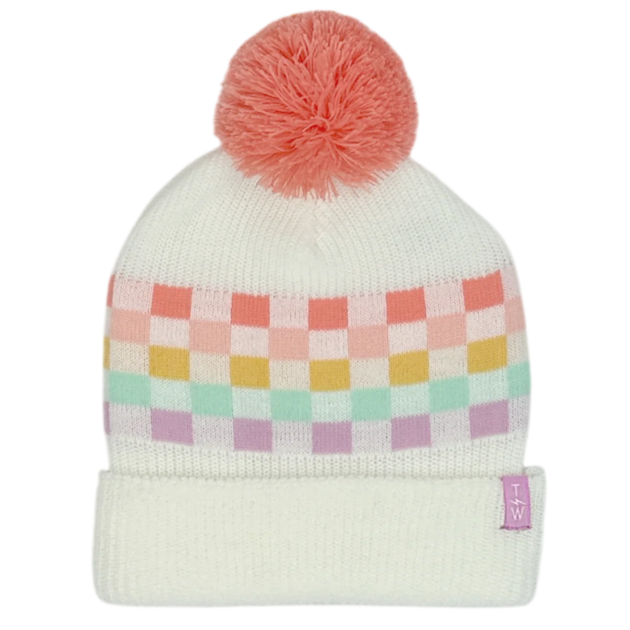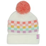 Cozy in more ways than one, this chunky knit beanie features a bold check-pattern in lilac/cream (also available in black/ocean) and is crafted from 100% acrylic for reliable warmth. Designed in sunny Los Angeles and styled for both toddlers and youth, it adds a playful yet grown-up twist to winter layering.
